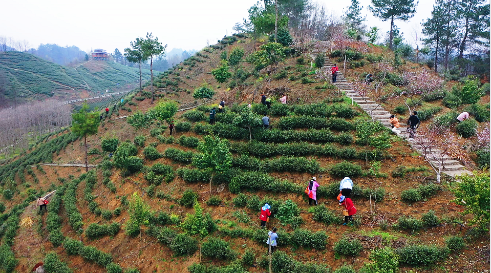 商南县茶叶联营公司刘保柱说:“短短五年,公司已发展新兴高山有机茶3000多亩,建自助茶舍3处,产业链上一年能提供1500人左右的岗位,当在家门口实现就业,收入有了极大提高。”如今,油坊岭村家家户户种茶,茶山变成茶海公园,而油坊岭村所在的的商南县,茶园规模已经发展到25万亩,商南全县现有茶叶加工厂200多家,5万多人依托茶产业种植加工实现稳定就业,小小的一片叶子成了群众小康路上的好帮手。