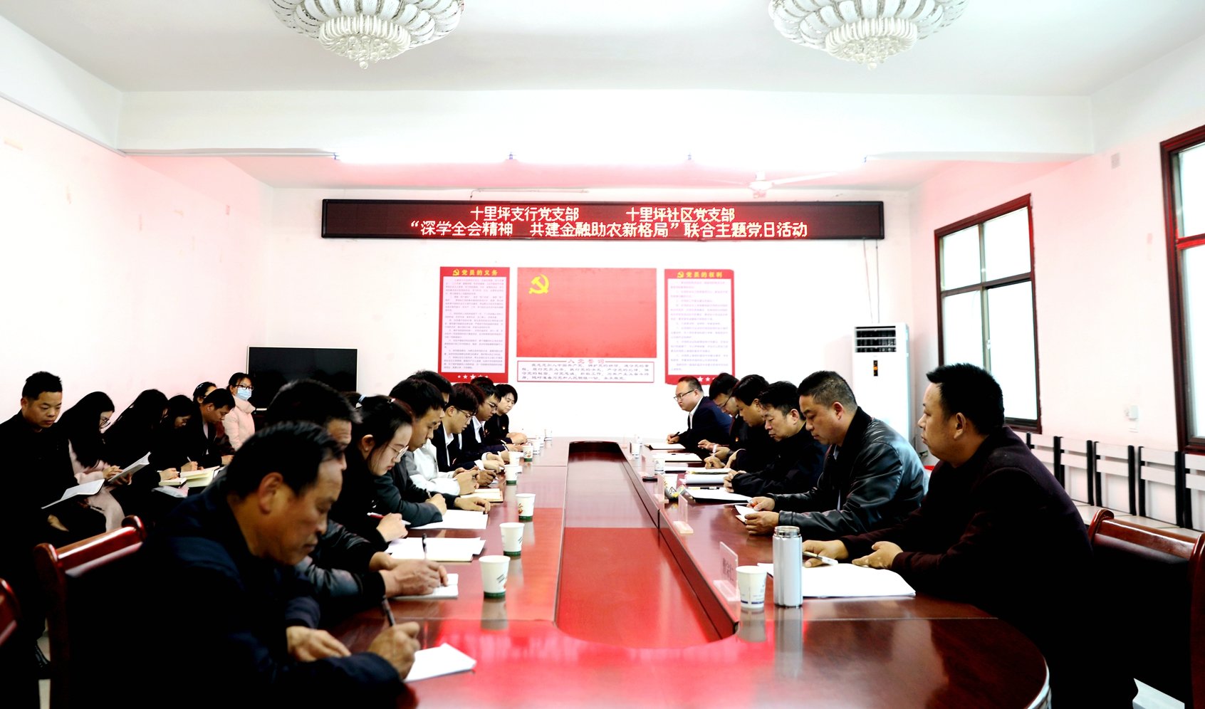 为深入学习贯彻党的二十届四中全会精神,以金融“活水”精准赋能乡村振兴,12月10日,商南农商银行十里坪支行党支部与十里坪社区党支部携手开展“深学全会精神 共建金融助农新格局”主题党日活动。商南农商银行党委书记作理论宣讲,十里坪镇党委书记讲话,镇党委副书记孔佩主持活动。