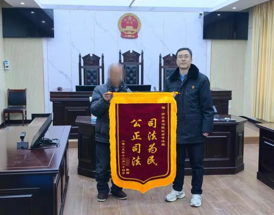 “感谢法官的辛勤付出,我收到赔偿款了。”2025年12月30日,一起交通事故责任纠纷案的原告家属汪某,将一面印有“司法为民 公正司法”的锦旗送至柞水县人民法院红岩寺法庭,以此表达对承办法官由衷的谢意。
