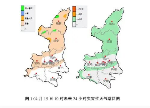 ▲陕西15日8时~16日8时 降雨、大风分布图